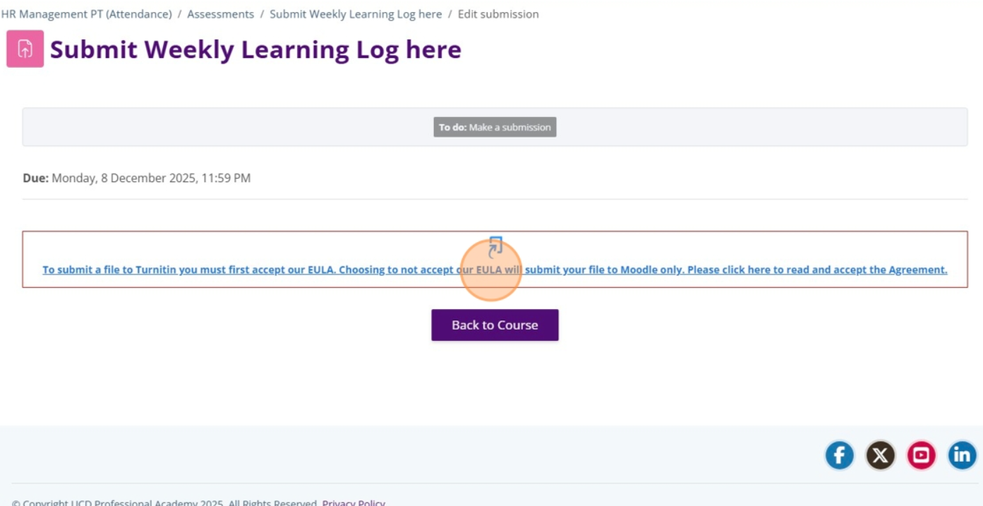 Click the to accept the assessment-specific level Turnitin T&Cs