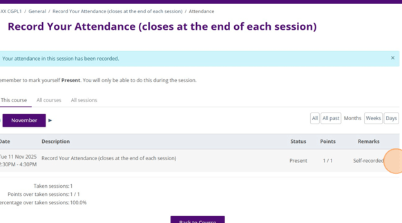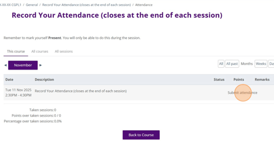 Please be aware: Attendance must be recorded within a certain window. The window will open 15 minutes before and close at the end of each session. e.g. If your Skill Sprint is from 1.30PM - 3.30PM you will be able to mark yourself as present from 1.15PM - 3.30PM.