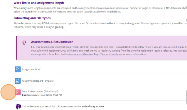 You can view your assessment details and deadlines here, as well as submit your assessments and see the date your results are scheduled to be released